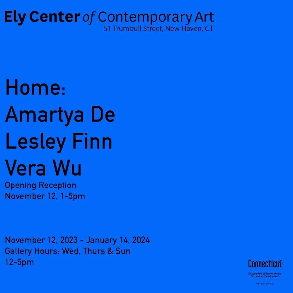 Home was a group show with photographer Amartya De and painter Vera Wu that ran from November 12, 2023 to January 14, 2024 at the Ely Center of Contemporary Art in New Haven, Connecticut. It was the culmination of a six-week residency in the ECOCA building, an early 20th century Elizabethan-style structure known as the John Slade Ely house.