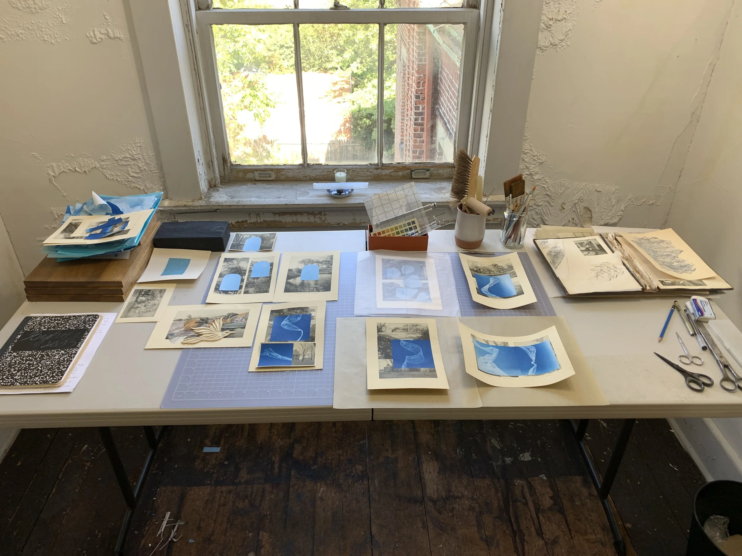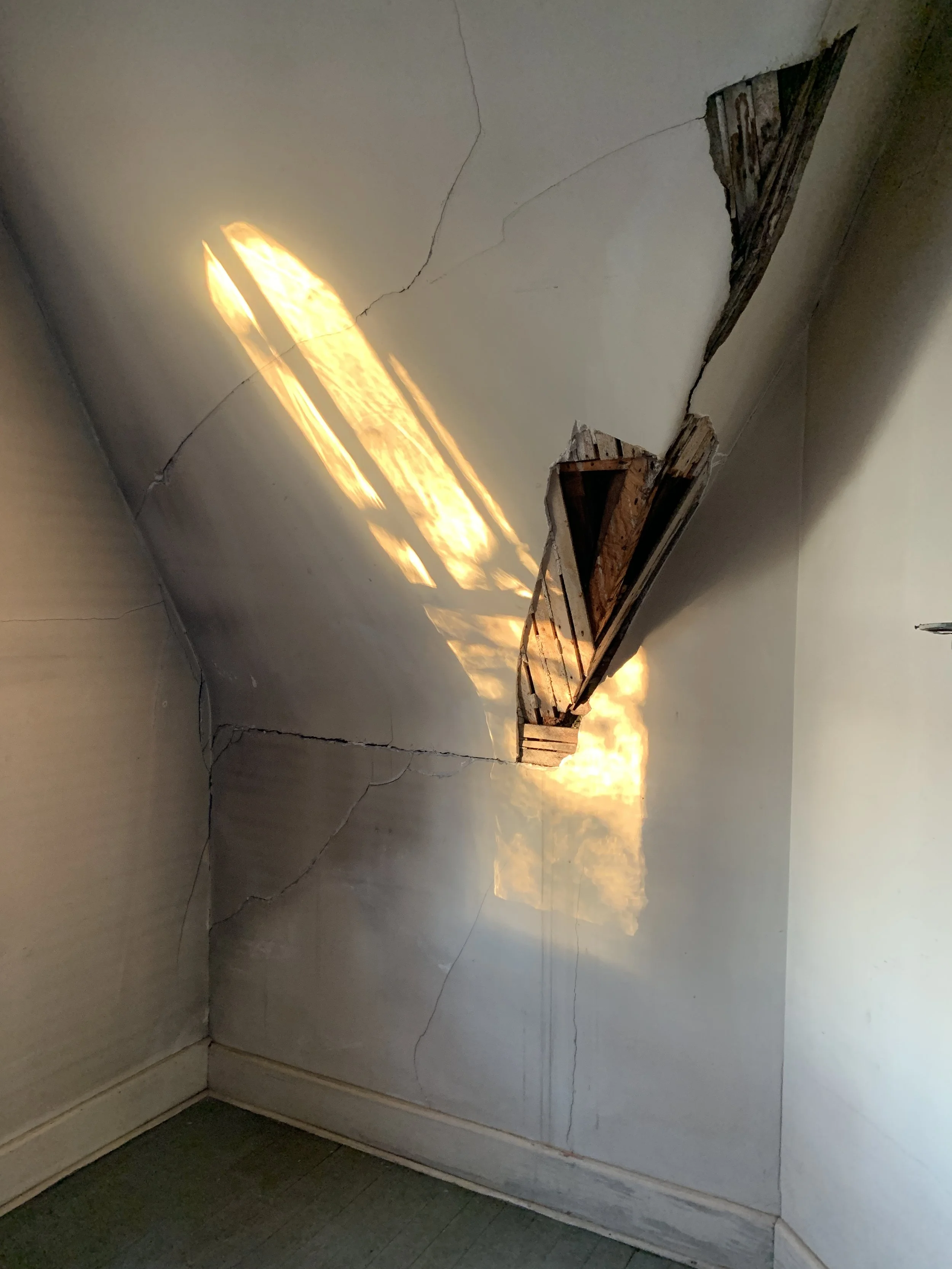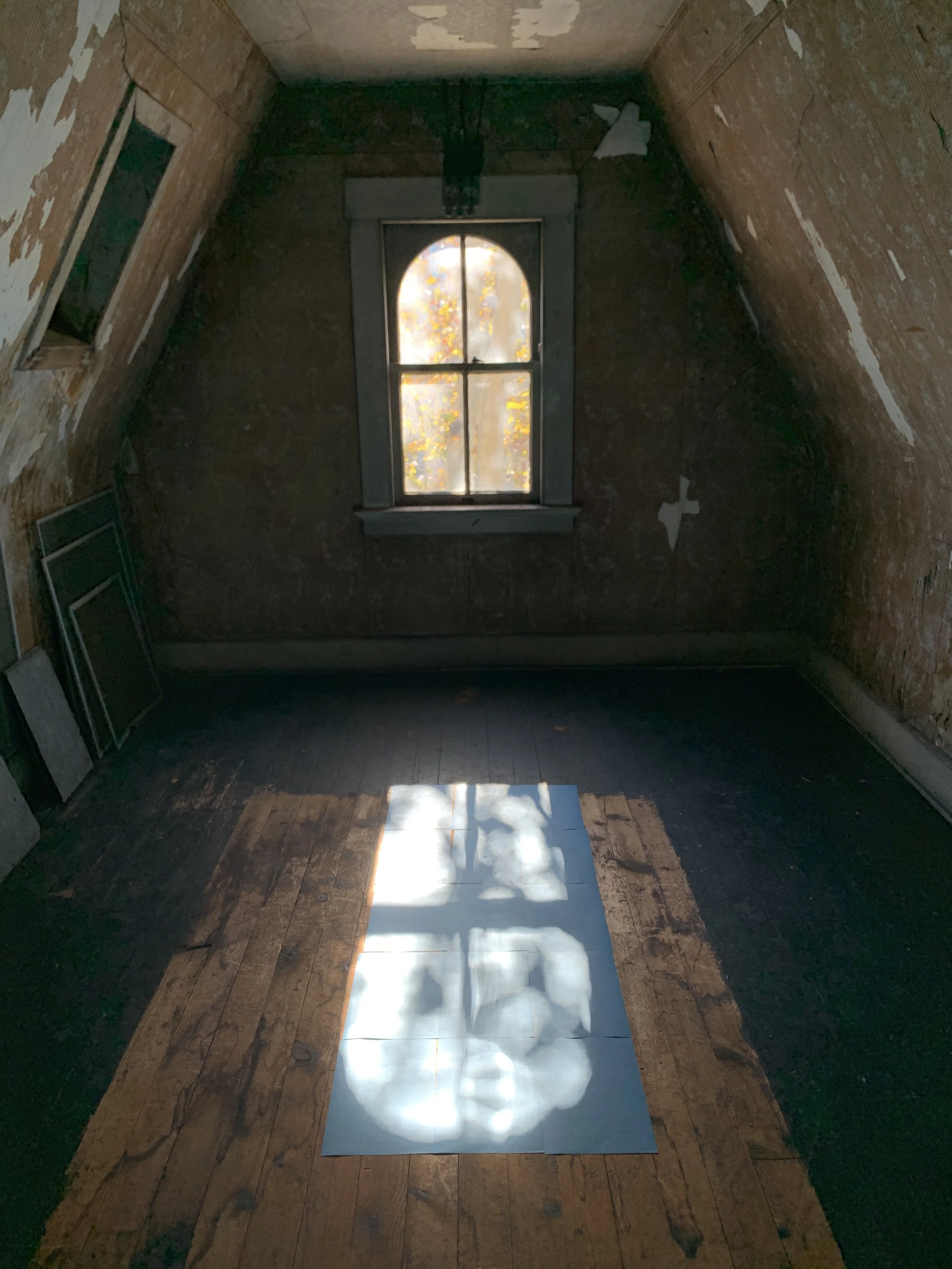 In the late summer of 2023 I was invited to set up my studio in the Ely Center of Contemporary Art as one of three inaugural artists in the Keyhole Residency. Over six weeks I worked with and in the building, inspired by its bubbling walls, peeling doors, incidental blues, and dancing light. The residency culminated in the group show Home (November 12, 2023 - January 14, 2024).